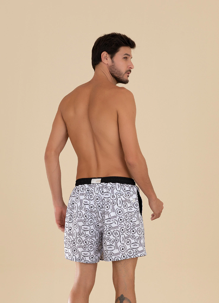 Bermuda de banho masculina com bolsos laterais e um bolso traseiro.