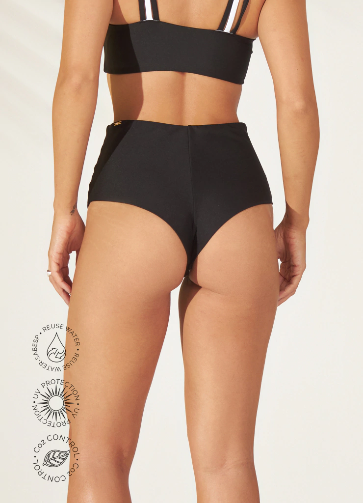 Calcinha na modelagem hot pants (cós alto) com traseira fio duplo. Essa peça possui alta compressão.