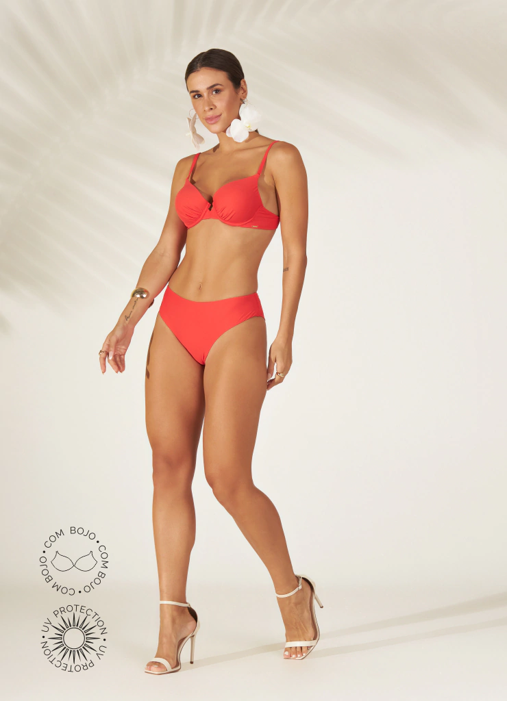 Top meia taça com bojo profundo e alças paralelas estreitas com regulagem. Ideal para quem busca alta sustentação e valorização do colo.